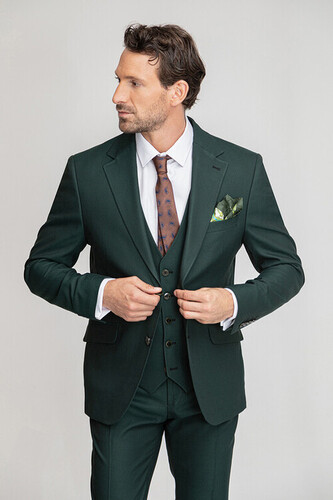 Jak wyglądają dziś modne garnitury męskie? Przede wszystkim skończyła się już era, gdzie marynarki męskie i spodnie wizytowe męskie muszą być wykonane z dokładnie takiej samej tkaniny i w identycznej barwie. Nie oznacza to oczywiście, że „komplety” odchodzą w zapomnienie, ale zabawa modą w męskim wydaniu wchodzi na jeszcze wyższy poziom. Jeśli więc chcesz nieco zaszaleć, możesz postawić na przykład na ciemnozielone spodnie materiałowe męskie i dobrać do nich górę w kratę – dobrze będzie jeśli odcień „z dołu” pojawi się w motywie printu marynarki. Jeśli jednak lubisz, gdy całość jest kompletem, pamiętaj że charakteru stylizacji dodadzą z pewnością kolorowe kamizelki męskie. A na jakie kolory dobrze jest się zdecydować? W trendach króluje butelkowa zieleń, granat, błękit, pudrowy róż, bordo i karmel. Jeśli chodzi o wzory, krata, pasy i drobne kwiaty zapewnią ci modowy efekt.