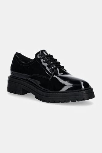 Geox półbuty skórzane CASEY damskie kolor czarny na płaskim obcasie J8420E 00043 C9999