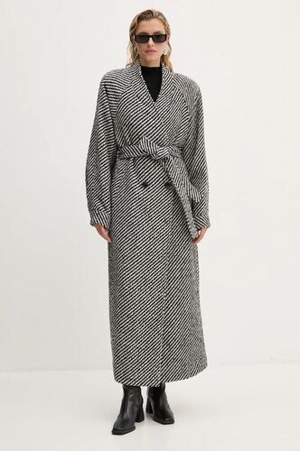 Gestuz płaszcz z domieszką gestuz wełny kolor czarny przejściowy dwurzędowy 10909195