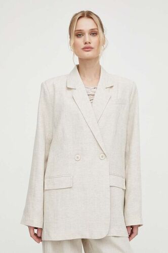 Gestuz marynarka z domieszką lnu kolor beżowy dwurzędowa gładka gestuz 10908813