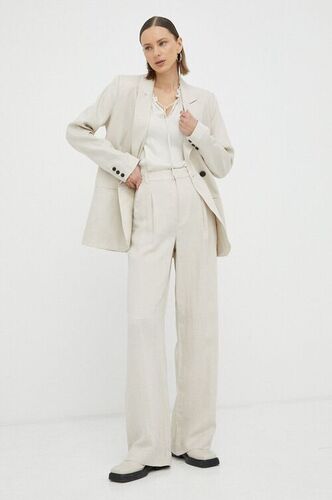 Gestuz spodnie z lnem Paula kolor gestuz beżowy szerokie high waist