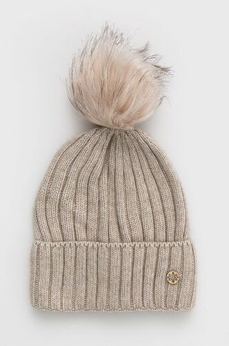 Granadilla czapka z domieszką wełny granadilla kolor beżowy z grubej dzianiny
