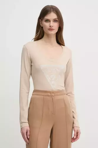 Guess longsleeve koszulki damskie guess damski kolor beżowy W5RI66 I3Z14