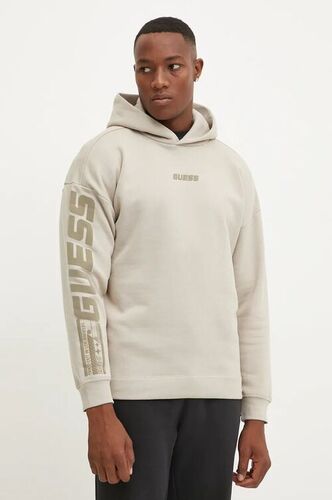 Guess bluza BEAU męska kolor beżowy z kapturem z nadrukiem M4YQ36 K9Z21