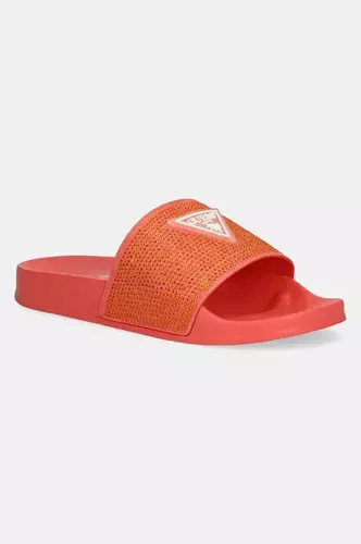 Guess klapki BEACH SLIPPERS STRASS damskie kolor pomarańczowy E4GZ25 BB00F