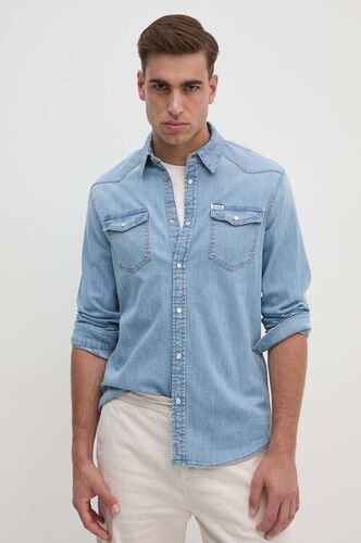 Guess Jeans koszula jeansowa męska kolor niebieski regular z kołnierzykiem klasycznym M4BH56 D5EI4