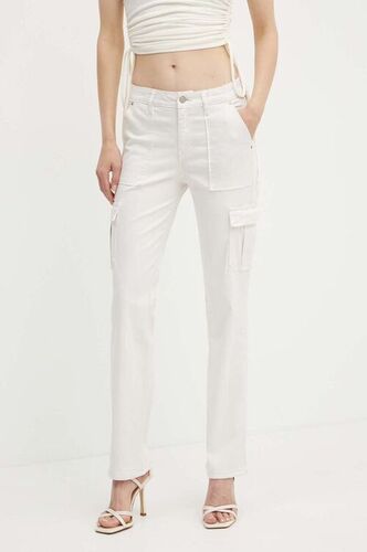 Guess spodnie z domieszką jedwabiu kolor beżowy proste high waist