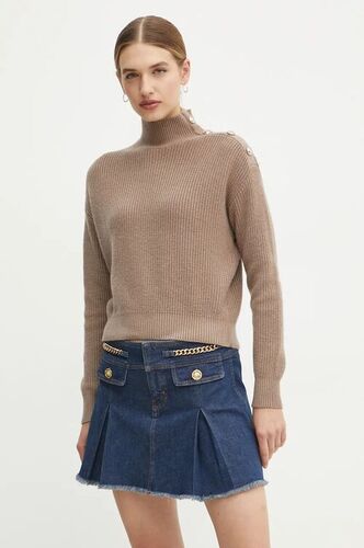 Guess sweter z domieszką wełny ZYLEE damski kolor brązowy lekki z półgolfem W4BR39 Z2WX0