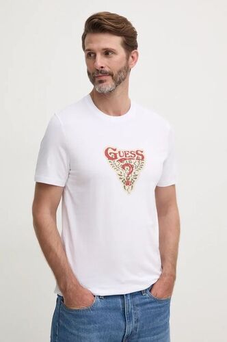 Guess t-shirt bawełniany męski kolor biały z aplikacją M4RI27 K8FQ4