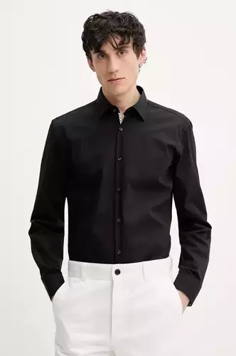 HUGO koszula męska kolor czarny slim z kołnierzykiem klasycznym 50505315