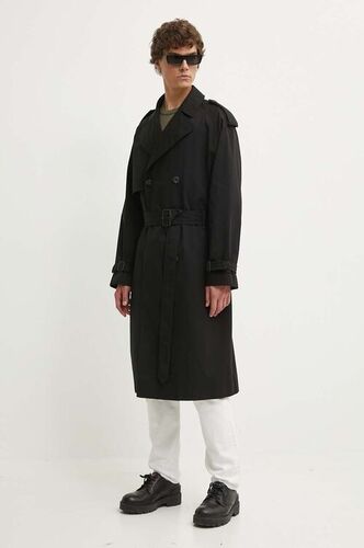 HUGO trencz męski kolor czarny przejściowy dwurzędowy 50507736