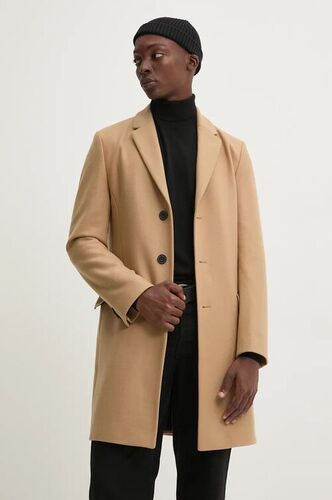 HUGO płaszcz z domieszką wełny kolor beżowy przejściowy 50534328