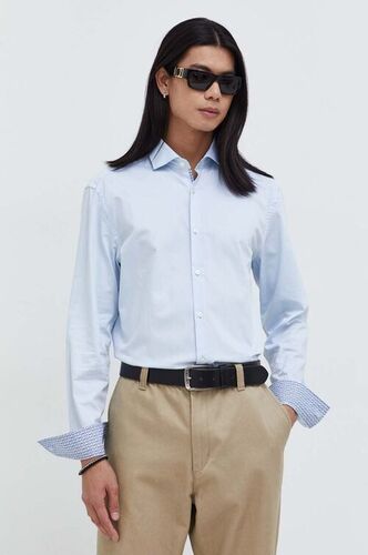 HUGO koszula bawełniana męska kolor niebieski regular z kołnierzykiem klasycznym 50508303