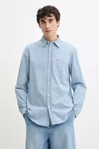 HUGO koszula jeansowa męska kolor granatowy regular z kołnierzykiem klasycznym 50520112