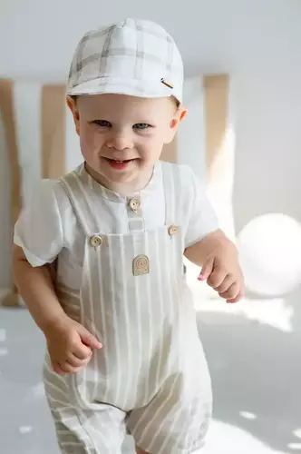 Jamiks czapka z daszkiem lniana dziecięca RAMSEY kolor beżowy wzorzysta JLH128 jamiks czapki