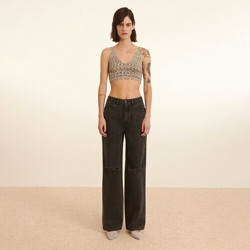 Reserved - Jeansy dzinsy czarne damskie z szerokimi nogawkami - Czarny