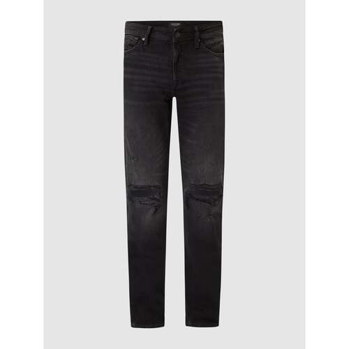 Jeansy o kroju modern fit model ‘Chuck’ – czarne jeansy męskie z dziurami ‘HiFlex’