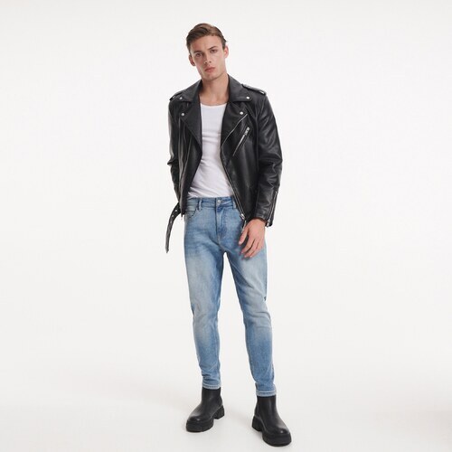 Reserved - Jeansy chino z efektem sprania - Niebieski