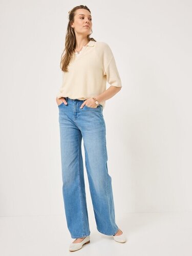 Jeansy z poszerzaną nogawką i 5 spodnie dzinsowe rurki damskie kieszeniami model ‘SUKI’
