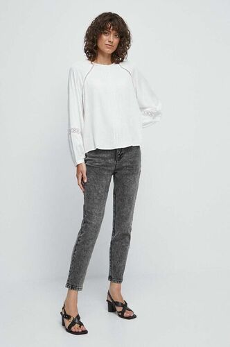 Medicine jeansy damskie kolor szary spodnie wysoki stan jeans