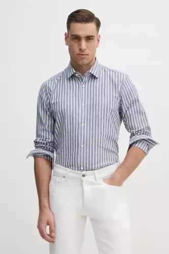 Joop! koszula z domieszką lnu męska kolor szary regular z kołnierzykiem klasycznym 30046046