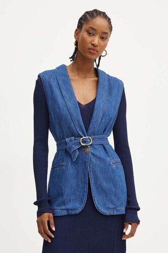 Answear Lab kamizelka kolor beżowy kamizelka damska granatowa jednorzędowa
