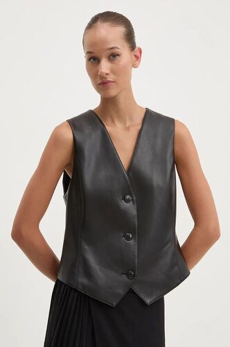 Answear Lab kamizelka skórzana kolor czarny jednorzędowa