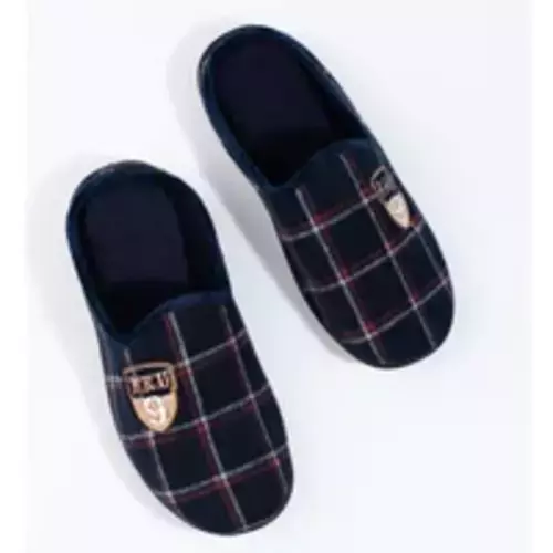 Męskie granatowe kapcie ciepłe kapcie męskie w kratę