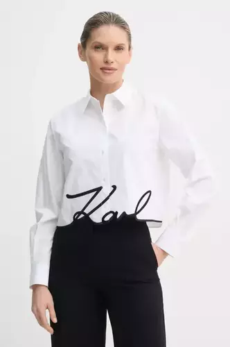 Karl Lagerfeld koszula bawełniana karl lagerfeld damska kolor biały regular z kołnierzykiem klasycznym A1W11002