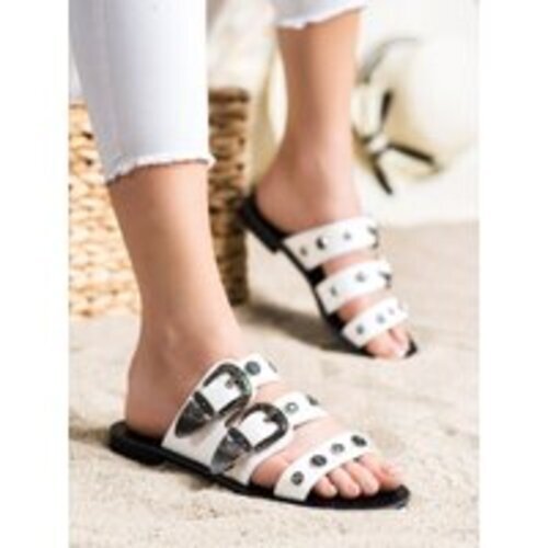 Stylowe klapki klapki z pełnym przodem ze sprzączkami białe