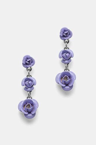 Kolczyki srebrne 925 fioletowe kwiatuszki z cyrkoniami Natura