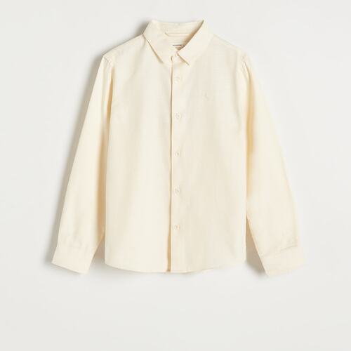 Koszula casualowa z dodatkiem lnu w jednolitym kolorze