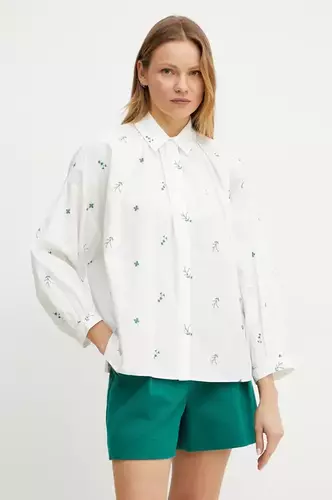 Desigual koszula bawełniana FLOWERS MINNIE damska kolor biały regular z kołnierzykiem biała koszula damska do jeansów klasycznym 25SWCW24