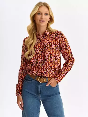 Bluzka koszulowa koszule damskie czarne z wzorem na całej powierzchni