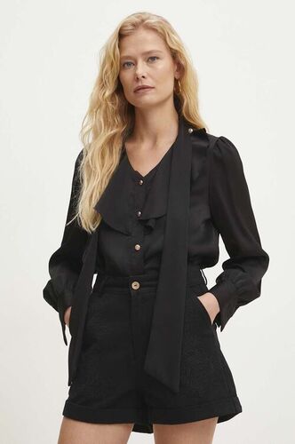 Answear Lab koszula granatowe koszule damskie damska kolor czarny regular z wiązanym dekoltem