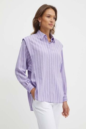 Medicine koszula lniana damska kolor fioletowy relaxed z kołnierzykiem klasycznym