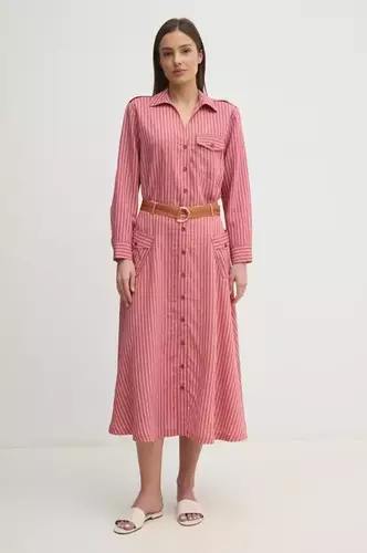 Superdry koszula lniana damska kolor różowy relaxed z kołnierzykiem klasycznym W4010463A-RJ4
