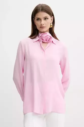 Marella koszula z domieszką jedwabiu INACO damska kolor różowy regular z kołnierzykiem klasycznym 2513111161200