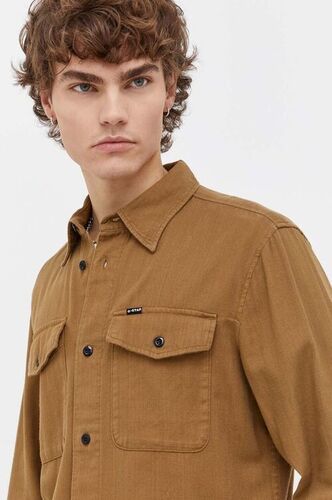 G-Star Raw koszula bawełniana męska kolor brązowy slim z kołnierzykiem klasycznym