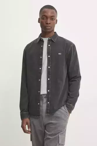 Tommy Jeans koszula jeansowa męska kolor fioletowy regular z kołnierzykiem klasycznym DM0DM21103