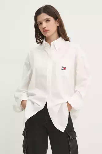 Tommy Jeans koszula bawełniana damska kolor biały relaxed z kołnierzykiem klasycznym DW0DW19357