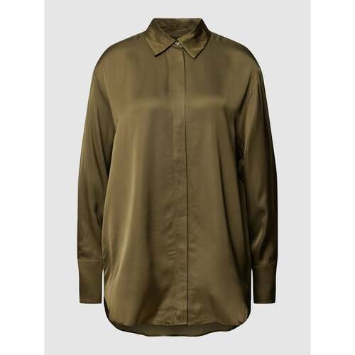 Guess koszula BOWED JUN damska kolor zielony relaxed z kołnierzykiem klasycznym W3GH93 WD8G2