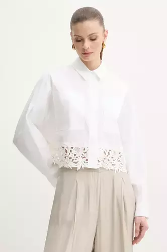 Twinset koszula bawełniana damska kolor biały relaxed z kołnierzykiem klasycznym 251TP2281