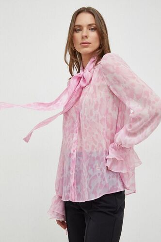 Pinko koszula damska kolor różowy regular z wiązanym dekoltem 100226.A1LA