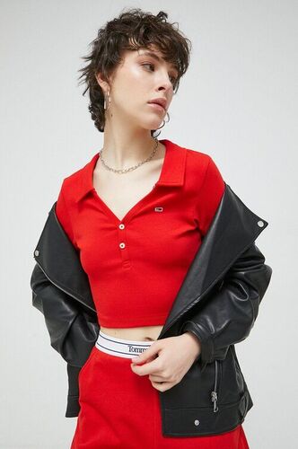 Tommy Jeans polo damski kolor różowa koszulka polo damska czerwony