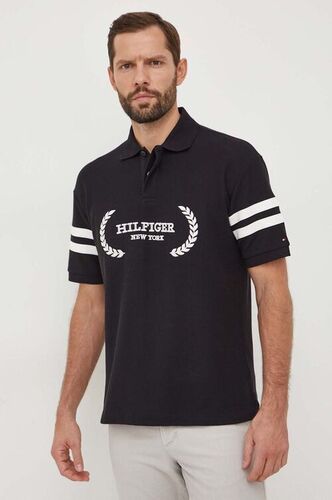 Tommy Hilfiger polo bawełniane kolor czarny z aplikacją MW0MW33588