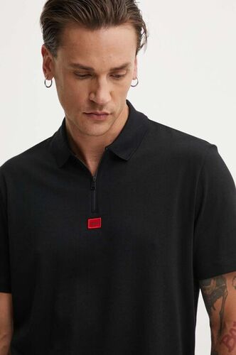 HUGO polo bawełniane kolor czarny gładki 50517638
