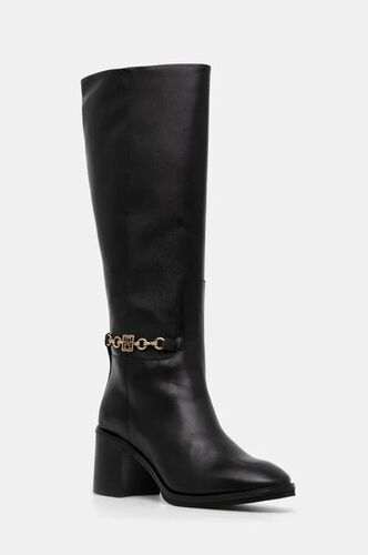 Tommy Hilfiger kozaki skórzane TH CHAIN LEATHER LONG BOOT damskie kolor czarny dlugie kozaki plaskie na słupku FW0FW08182