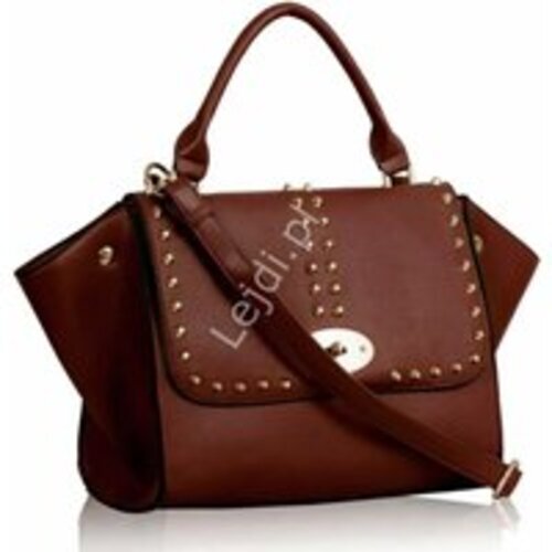 Brązowa trebka z jetami, modna torebka damska kuferek 0178