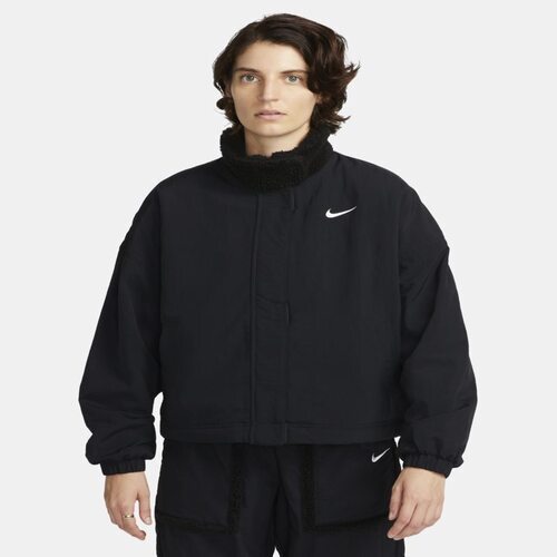 Damska kurtka z tkaniny z dzianinową podszewką Nike Sportswear kurtka jesienna damska długa Essential - Czerń